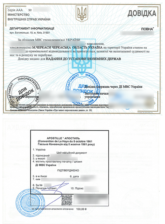 Для успешного апостилирования бумага должна быть выдана уполномоченным органом, без исправлений, дефектов и должна содержать четкие печати и подписи. Документ об отсутствии судимости выдается Министерством внутренних дел Украины и имеет строгую форму.